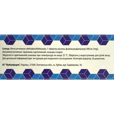 1 таблетка містить фталілсульфатіазолу 500 мг;