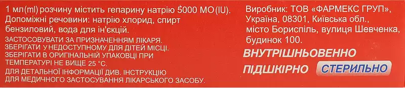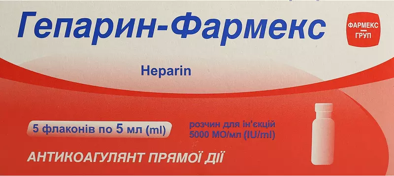 Гепарин-Фармекс розчин для ін'єкцій 5000 МО/мл флакон 5 мл №5, Фармекс Груп