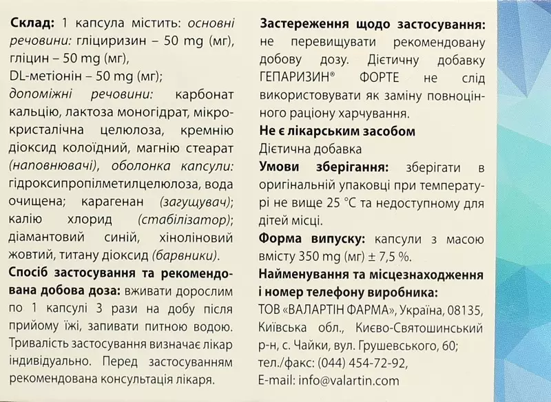 Гепаризин форте капсули №30, ВАЛАРТІН ФАРМА