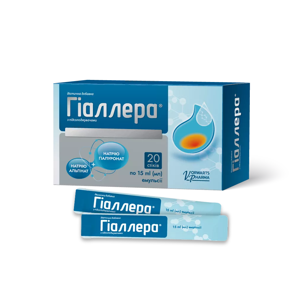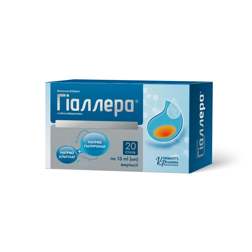 дітям з 6 років та дорослим вживати внутрішньо по 1 стіку 1-4 рази на добу після вживання їжі та/або перед сном або за необхідністю. Не запивати! Не вживати їжу після Гіаллера ® не менше 1 години. Між вживанням дієтичної добавки Гіаллера ® та будь-якими лікарськими засобами чи іншими дієтичними добавками, рекомендовано робити перерву не менше 1 години.