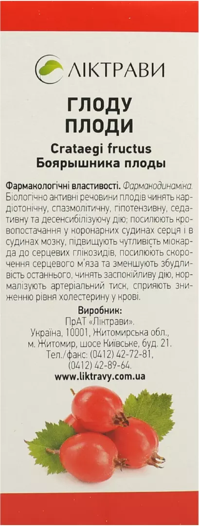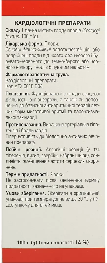 1 пачка містить глоду плодів (Crataegi fructus) 100 г;