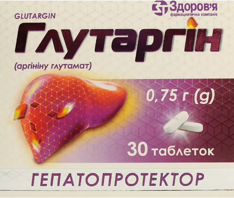 «Глутаргін таблетки 750 мг №30, Здоров'я ФК» – це медичний препарат, вироблений фармацевтичною компанією «Здоров'я ФК», виявляє гепатопротекторну дію, зменшує токсичний вплив аміаку, покращує утилізацію алкоголю, та має антитоксичні та ендотелійпротективні властивості без тератогенних чи гонадотоксичних ефектів. Активною речовиною препарату є аргініну глутамат. «Глутаргін» доступний у вигляді таблеток по 750 мг та відпускається за рецептом від лікаря.