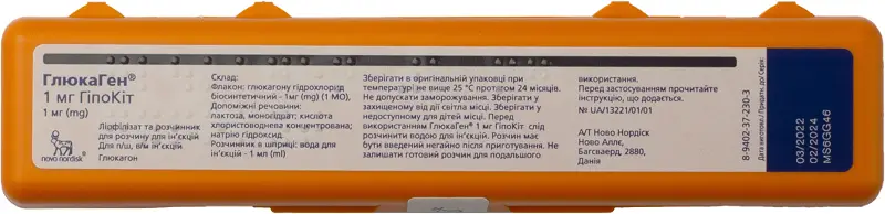 Упаковка для ліофілізату ГлюкаГен® 1 мг ГіпоКіт