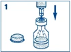1. Зніміть пластиковий ковпачок з флакона. Зніміть зі шприца ковпачок голки. Не виймайте пластиковий шток поршня зі шприца. Введіть голку через гумову пробку у флакон, що містить ліофілізат (в межах позначеного кола), і введіть рідину зі шприца до флакона.