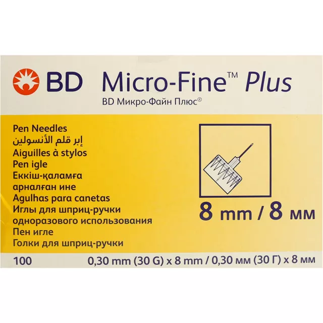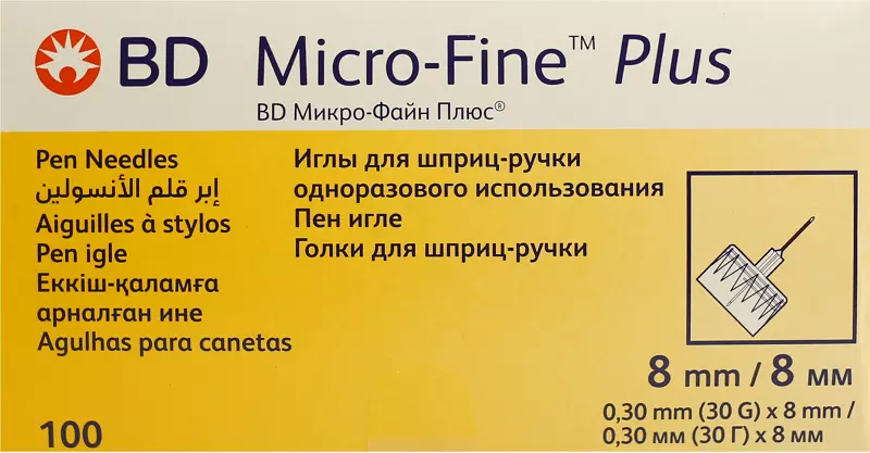 Голки для шприц-ручки BD Micro-Fine Plus 30G (0.30 x 8.0 мм), 100 штук