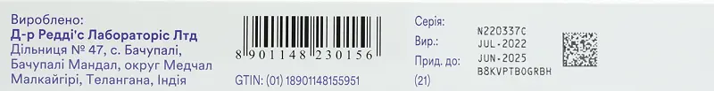 Категорія відпуску. За рецептом. Виробник. Д-р Редді’с Лабораторіс Лтд, Індія.Місцезнаходження. Дільниця № 47, с. Бачупалі, Кутбулапур Мандал, округ Ранга Редді, Телангана, Індія.