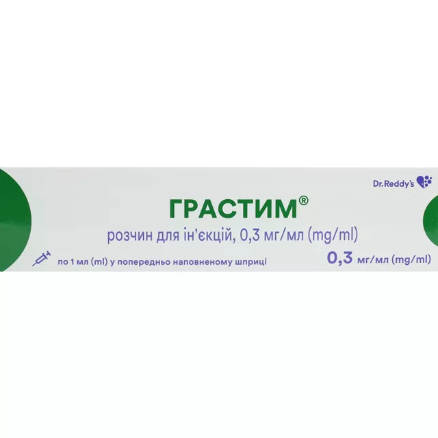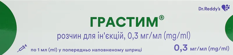 Передозування. Симптоми передозування невідомі. Через 1-2 дні після припинення лікування препаратом кількість циркулюючих нейтрофільних гранулоцитів зазвичай знижується на 50 %, а через 1-7 днів повертається до норми. Застосування у період вагітності або годування груддю. Безпека застосування препарату у період вагітності не встановлена. При призначенні препарату вагітним слід співставити очікуваний терапевтичний ефект з можливим ризиком для плода. Невідомо, чи проникає філграстим у грудне молоко, тому застосовувати його у період годування груддю не рекомендується. Діти. Безпека та ефективність застосування препарату новонародженим не встановлені. Рекомендації щодо дозування для хворих дитячого віку такі ж самі, як і для дорослих, які отримують мієлосупресивну цитотоксичну хіміотерапію. Особливості застосування.Нейтропенія у хворих, які отримують цитотоксичну хіміотерапію з приводу злоякісних захворювань.