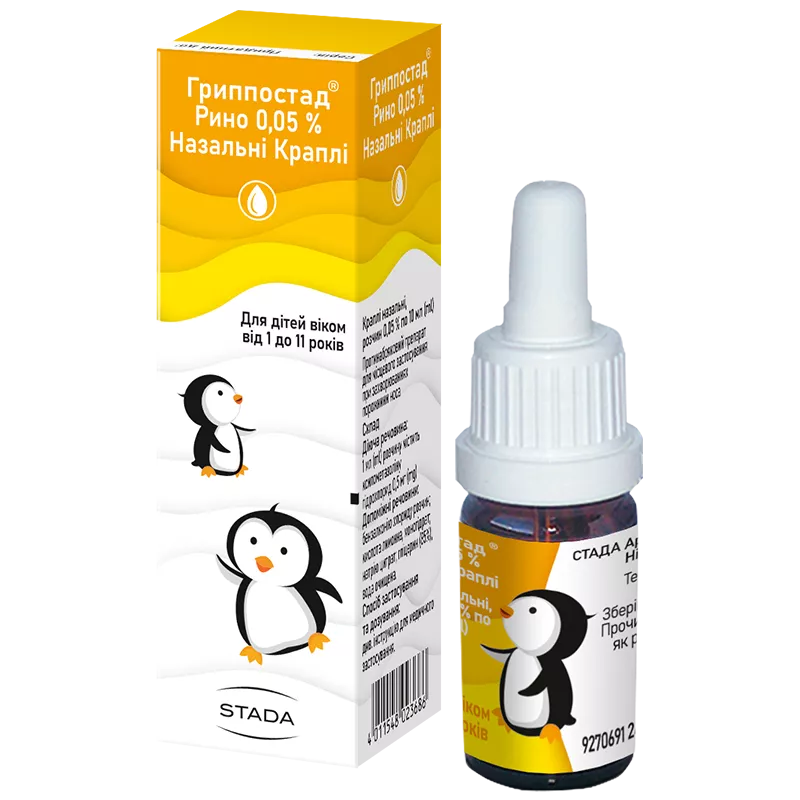 ГРИППОСТАД® РИНО 0,05 % НАЗАЛЬНІ КРАПЛІ не слід застосовувати дітям віком до 1 року. Застосовувати дітям віком від 1 до 11 років рекомендується лише під наглядом дорослих.