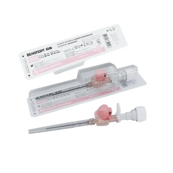 Канюля інфузійна Венопорт плюс розмір 20G (1,1*32 мм) рожева, Юрія-Фарм