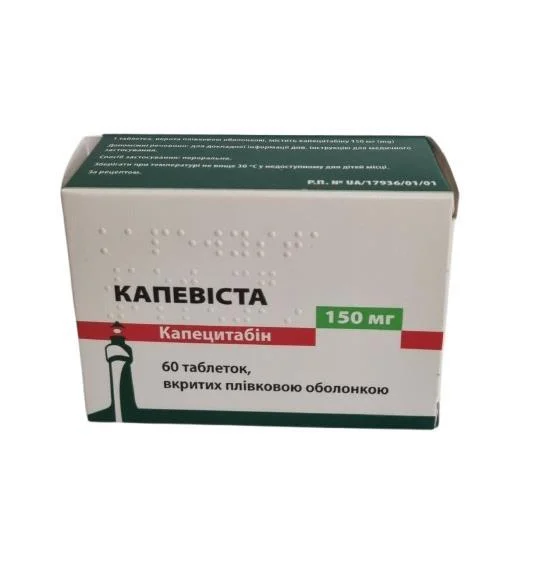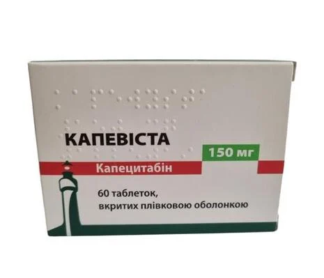 Спосіб застосування та дози.Лікарський засіб КАПЕВІСТА може призначати лише кваліфікований лікар, який має досвід застосування антинеопластичних лікарських засобів. Для всіх пацієнтів рекомендований ретельний моніторинг протягом першого циклу лікування. Лікування слід відмінити при прогресуванні захворювання або розвитку неприйнятної токсичності. Препарат КАПЕВІСТА у таблетках приймати перорально цілими, не пізніше ніж через 30 хвилин після вживання їжі, запиваючи водою. Таблетки препарату КАПЕВІСТА не слід подрібнювати або розрізати.