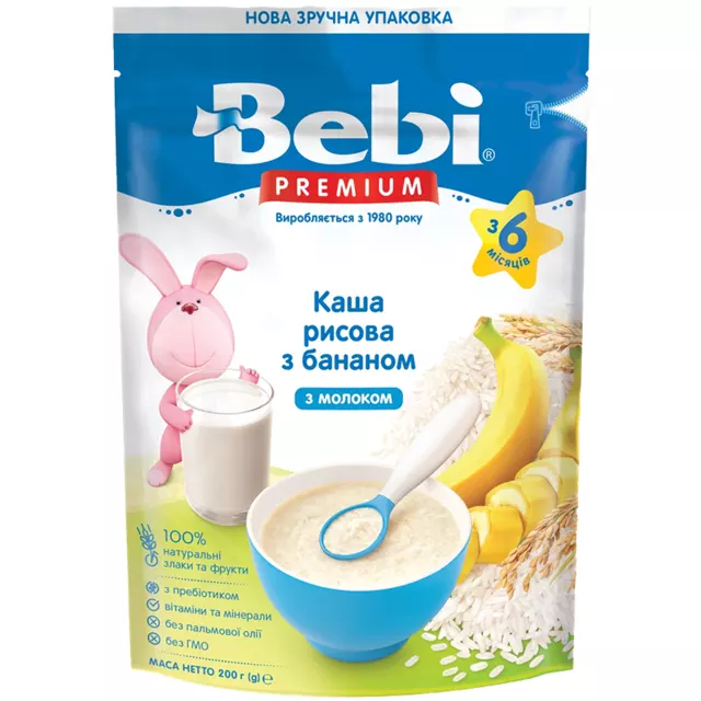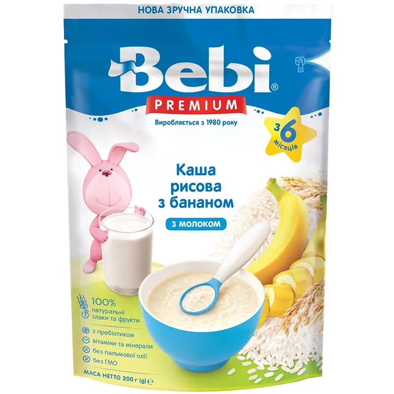 КАША МОЛОЧНА «РИСОВА З БАНАНОМ» ВІД 6 МІС BEBI PREMIUM