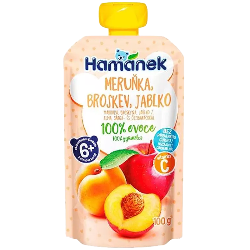 Пюре Hamanek з яблук, абрикосів та персиків з вітаміном С, гомогенізоване, стерилізоване для дитячого харчування