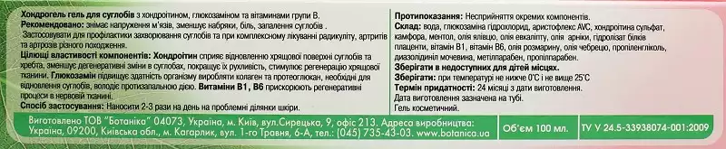 Хондрогель гель для суглобів 100 мл, Ботаника