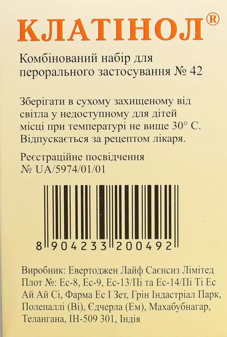 Клатінол набір комбінований №42, Евертоджен Лайф Саєнсиз