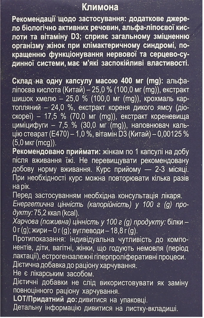 Інструкція для Климона капсули 400 мг №60 Роздрукувати