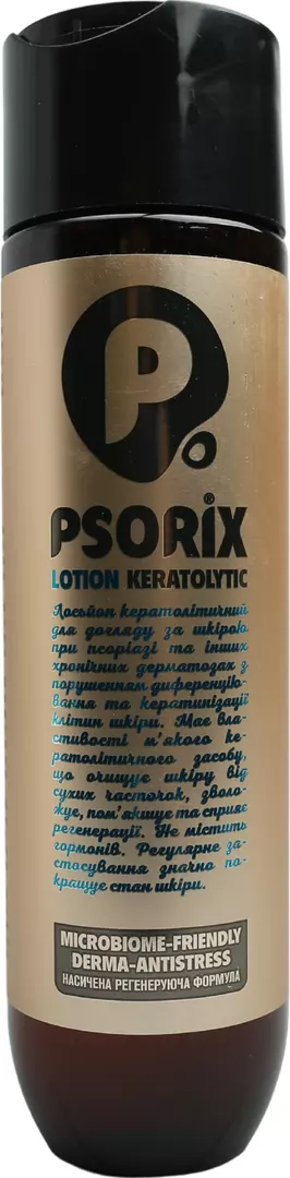 Спосіб застосування:Нанести невелику кількість «Psorix» лосьйону кератолітичного на попередньо очищену шкіру обличчя та тіла 1-2 рази на день, після поглинання лосьйону нанести «Psorix» крем відновлюючий. Для шкіри голови використовувати після очищення шампунем кератолітичним PSORIX. Не змивати. Реабілітаційний курс для шкіри схильної до псоріазу та інших хронічних дерматозів від 4 тижнів. Для комплексного догляду за шкірою рекомендується застосовувати «Psorix» лосьйон кератолітичний разом із «Psorix» кремом дерматологічним, «Psorix» милом дерматологічним та «Psorix» шампунем кератолітичним. Можливо паралельне застосовування «Psorix» лосьйону кератолітичного з глюкокортикостероїдною терапією або в перервах між такими курсами.
