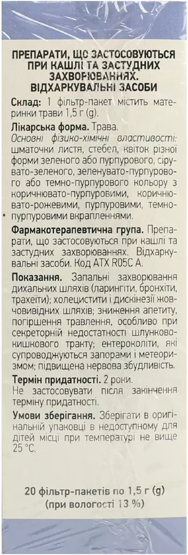 1 фільтр-пакет містить материнки траву 1,5 г.