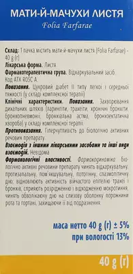 Склад лікарського засобу:діюча речовина: мати-й-мачухи листя.