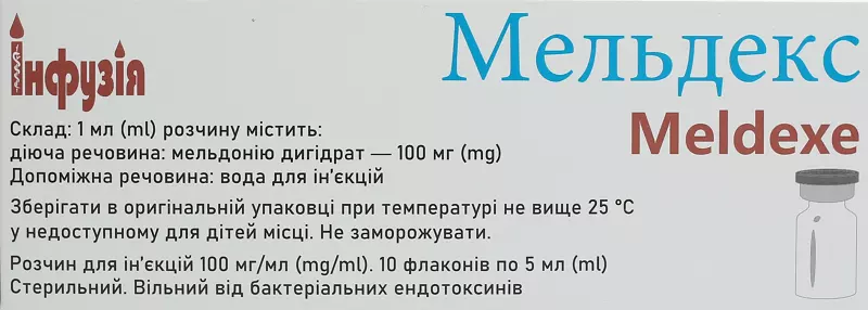 Мельдекс розчин для ін'єкцій 100 мг/мл флакон 5 мл №10, Інфузія ПП (Україна, Городок)