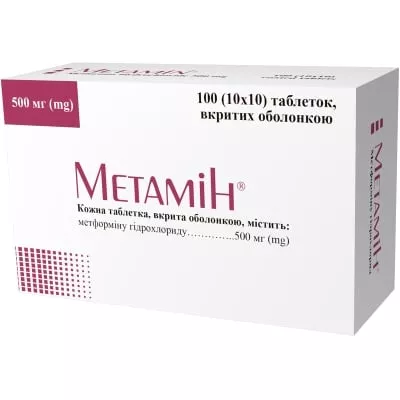 Зазвичай початкова доза становить 500 мг або 850 мг (Метамін®, таблетки, вкриті оболонкою, по 500 мг або 850 мг) 2-3 рази на добу під час або після прийому їжі.