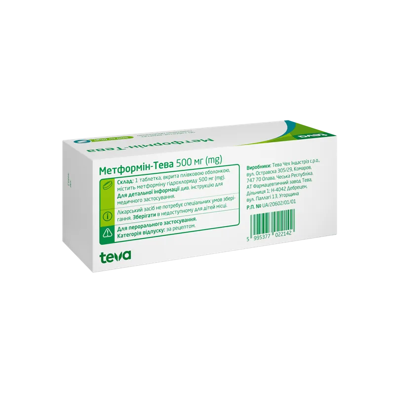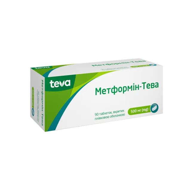 Метформін-Тева таблетки вкриті оболонкою 500 мг №90, Тева