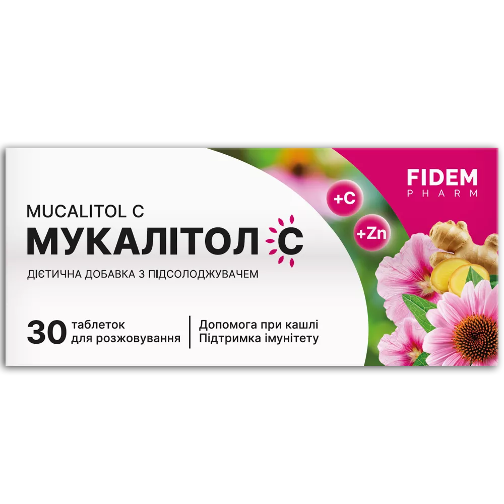 Інструкція для Мукалітол С таблетки №30, Фідем Фарм Роздрукувати