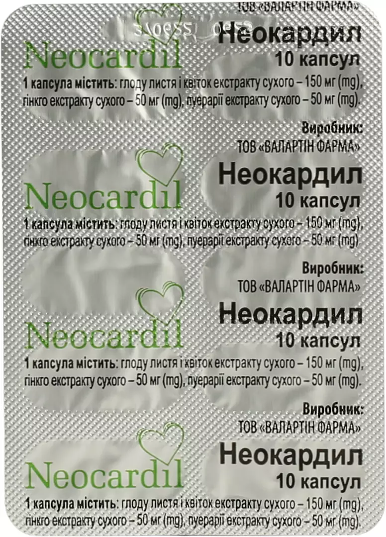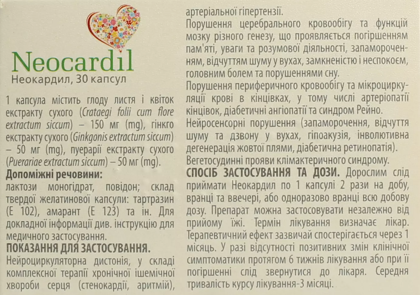 Інструкція для Неокардил капсули №30 Роздрукувати