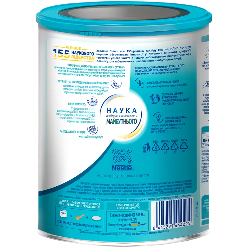 ВАЖЛИВА ІНФОРМАЦІЯ: суміш молочна суха NAN 4 OPTIPRO з 5 олігосахаридами та L. Reuteri для дітей від 18 місяців не є замінником грудного молока, але це спеціально розроблена суміш для здорової дитини від 18 місяців. Грудне вигодовування слід продовжувати якомога довше.