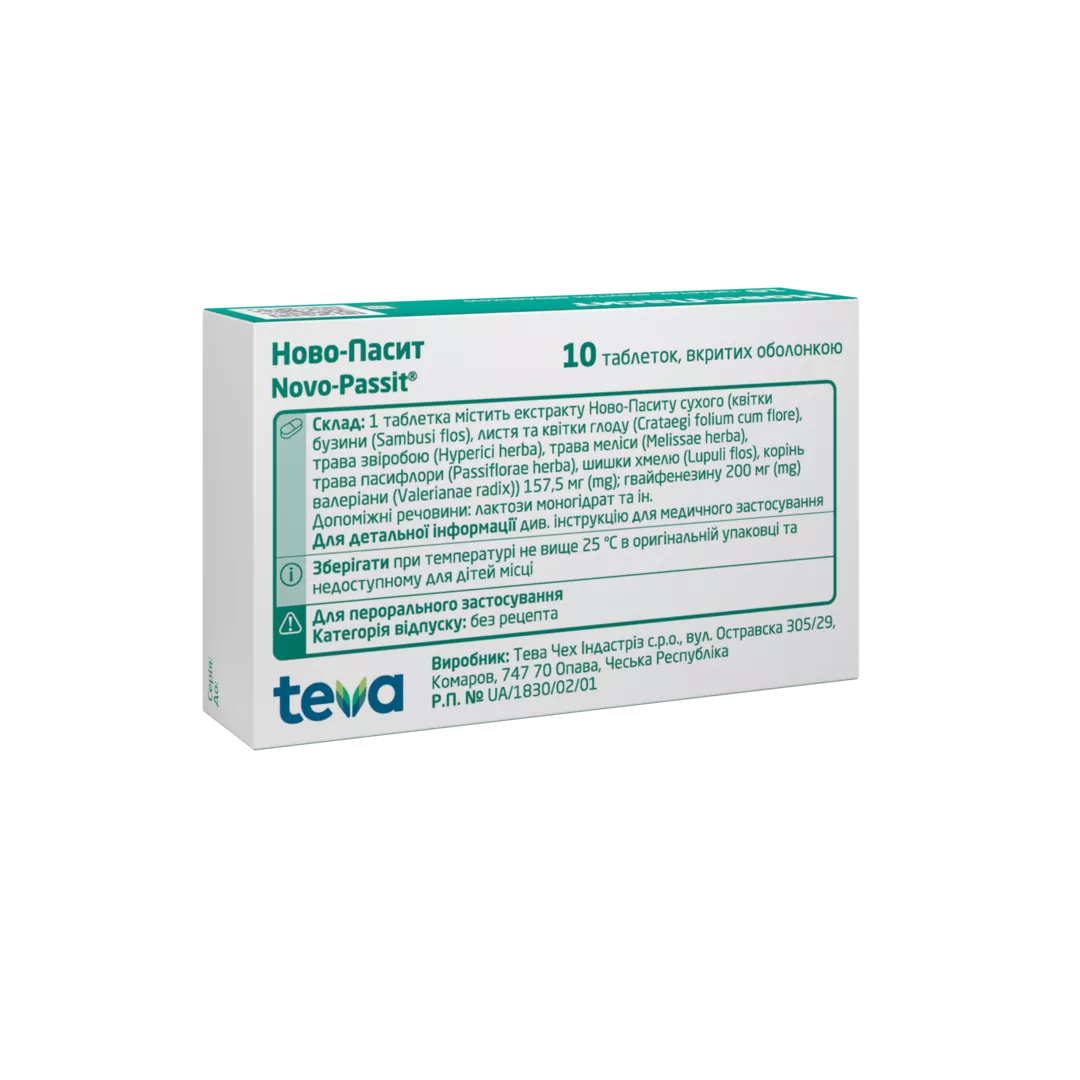 Інструкція для Ново-Пасит таблетки вкриті оболонкою №10 Роздрукувати