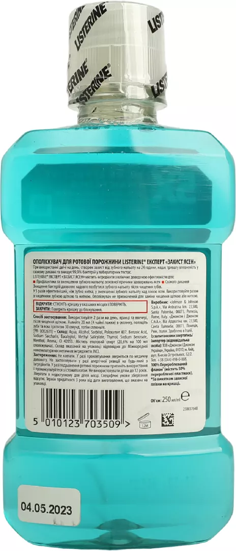 Унікальна * формула LISTERINE® на основі ефірних масел: тимол, евкаліптол, ментол, метилсаліцилат;