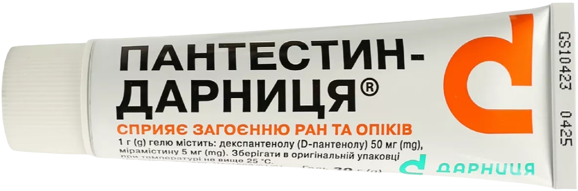 «Пантестин-Дарниця гель туба 30 г, Дарниця ФФ» – це комбінований лікарський засіб для зовнішнього застосування, що сприяє швидкому загоєнню шкіри та одночасно захищає від інфекції. У складі гелю поєднано дві активні речовини: декспантенол (провітамін В5), який стимулює регенерацію шкіри, і мірамістин – антисептик широкого спектра дії. Завдяки цій комбінації препарат діє як регенеруючий та протимікробний засіб. Випускається у вигляді білого однорідного гелю зі слабким запахом та підходить для застосування у дорослих і дітей з перших днів життя. Про ефективність і зручність використання також звертають увагу численні на «Пантестин-Дарниця» відгуки, які підтверджують позитивний досвід застосування засобу в різних клінічних ситуаціях. Лікарський засіб «Пантестин» купити можна без рецепта.