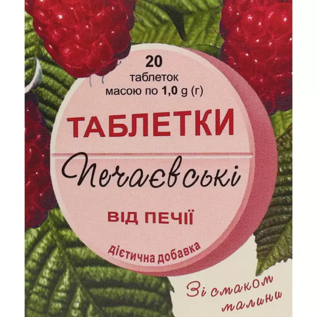 Інструкція для Печаєвські таблетки від печії зі смаком малини №20 Роздрукувати