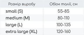 Якщо обидва показники: об’єм талії та стегон знаходяться в межах одного з розмірів, вказаних в таблиці - обирайте цей розмір. Якщо показники талії та стегон знаходяться в двох різних розмірах, обирайте більший розмір.
