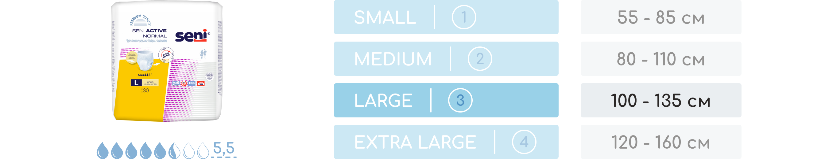 SENI Active Normal непомітні у використанні та одягаються як звичайна білизна. Виріб можна легко зняти завдяки тому, що він рветься у бокових швах. Широкий еластичний пояс забезпечує винятковий