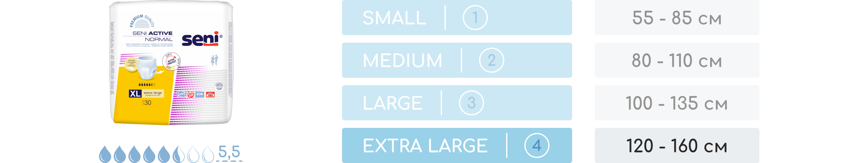 SENI Active Normal непомітні у використанні та одягаються як звичайна білизна. Виріб можна легко зняти завдяки тому, що він рветься у бокових швах. Широкий еластичний пояс забезпечує винятковий