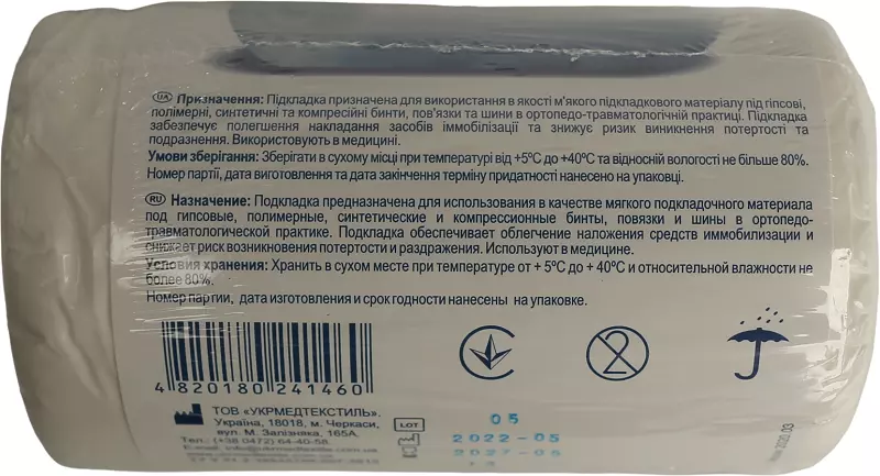 Підшинна підкладка Cast Padding "Білосніжка" призначена для використання в якості підкладкового матеріалу під гіпсові, синтетичні і компресійні пов'язки і шини при різних травмах, особливо що супроводжуються переломом кісток, а також при лікуванні різних захворювань опорно-рухового апарату.