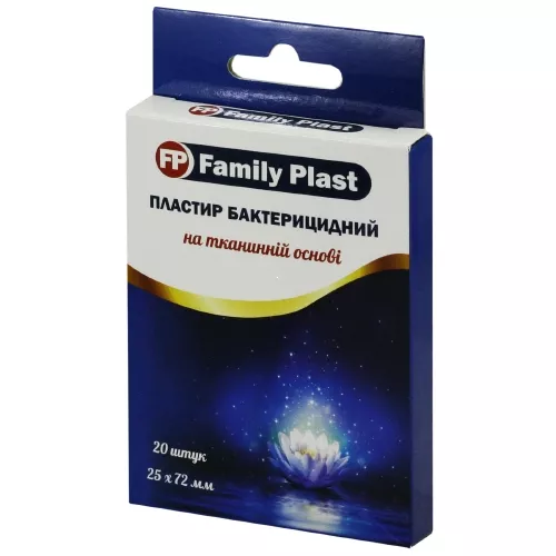 Пластир медичний «FP Family Plast» бактерицидний на тканинній основі 25 мм х 72 мм, 20 штук