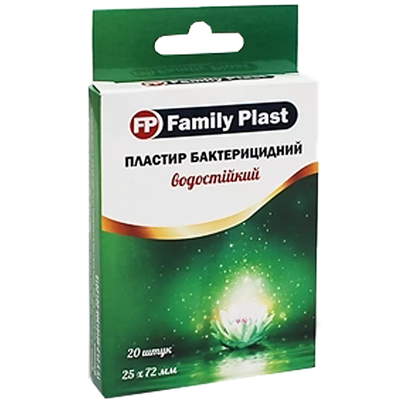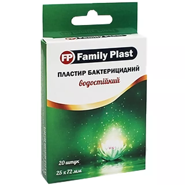 Пластир медичний «FP Family Plast» бактерицидний на полімерній основі водостійкий, прозорий 25 мм х 72 мм, 20 штук