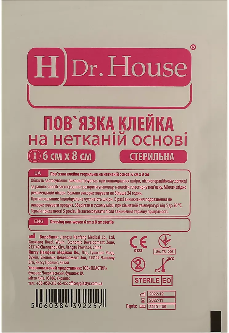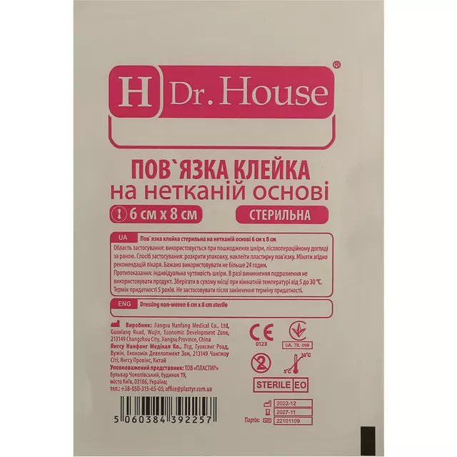 Пластирна пов’язка Доктор Хаус (Dr.House) H Pore на нетканій основі розмір 6 см*8 см 1 шт, Jiangsu Nanfang Medical Co., Ltd