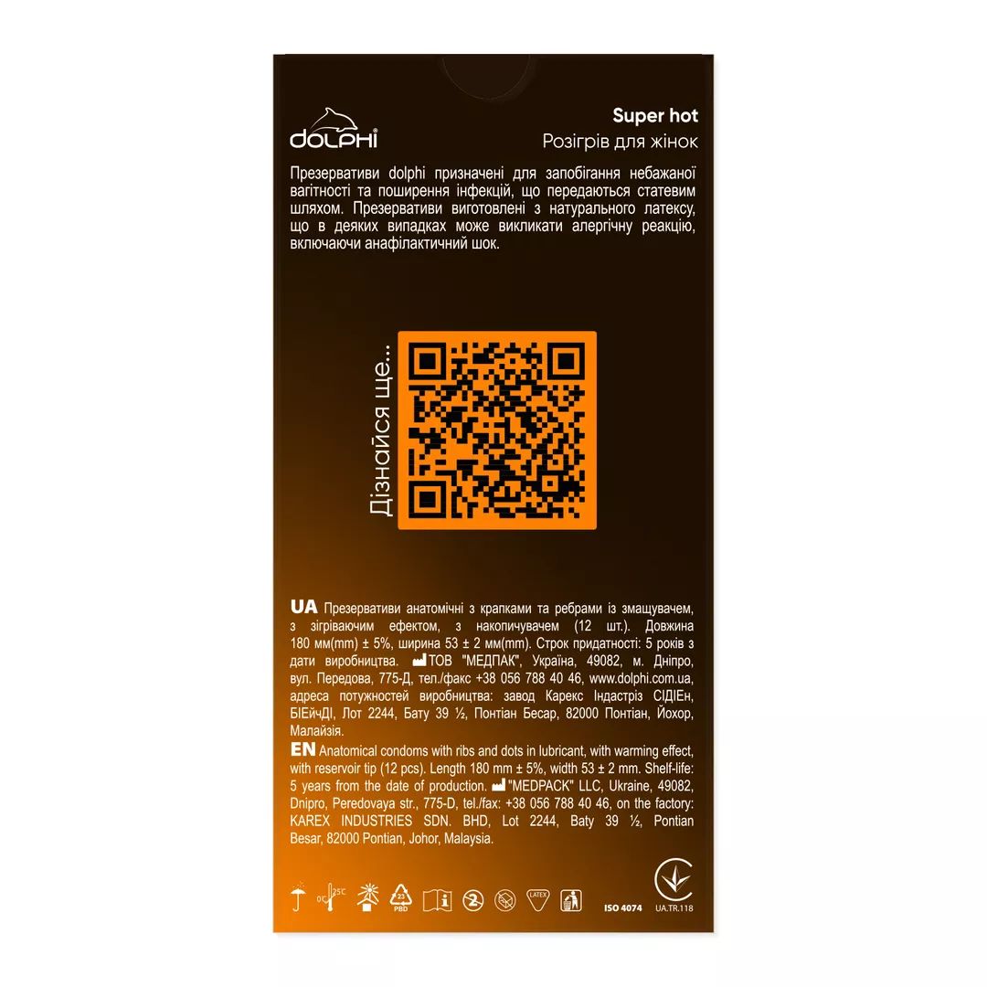 - Упаковка Dolphi Super Hot спроектована таким чином, щоб її було зручно та швидко відкрити у будь-яких ситуаціях.