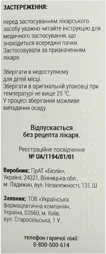 Мережа аптек «Бажаємо здоров'я» співпрацює лише з перевіреними постачальниками. Препарати, які надходять в наші аптеки проходять усі відповідні етапи реалізації лікарських засобів. Більше інформації.