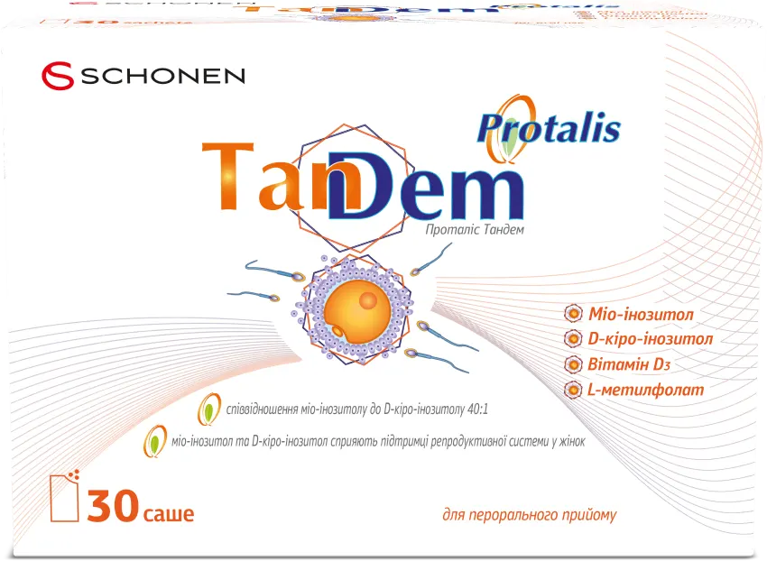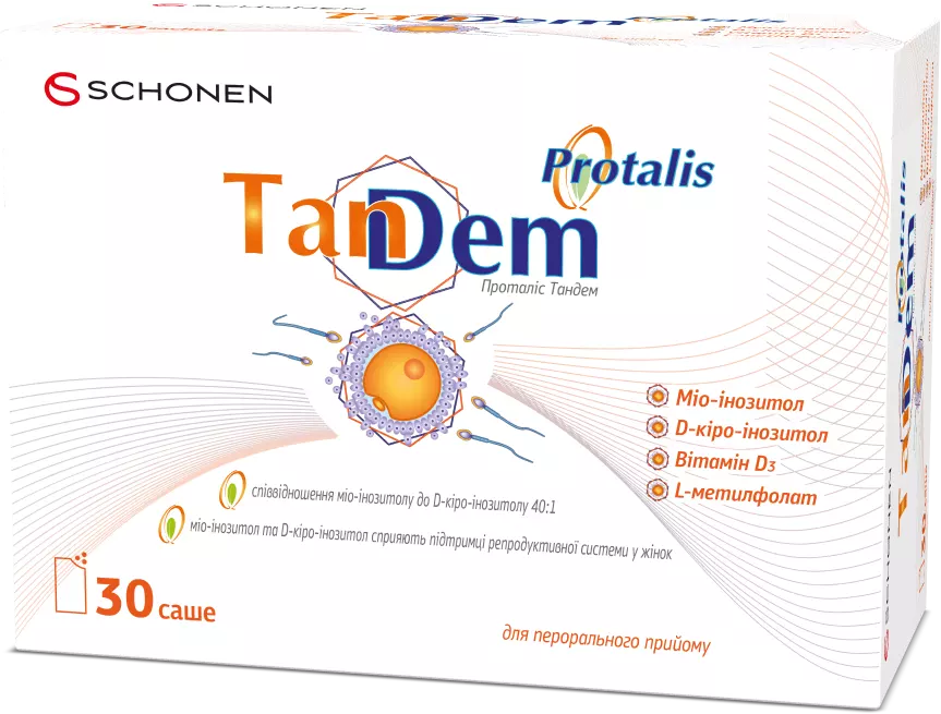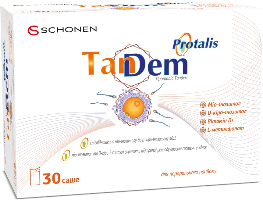 «Проталіс ТанДем порошок саше №30, ХС Кловер» – це дієтична добавка, що використовується для покращення функціонування репродуктивної системи жінок, особливо при ановуляторному безплідді та синдромі полікістозних яєчників (СПКЯ). Основними активними речовинами є міо-інозитол, D-кіро-інозитол, вітамін D3 та фолат L-метилфолат. Препарат випускається у формі порошку в саше та доступний без рецепта від лікаря.