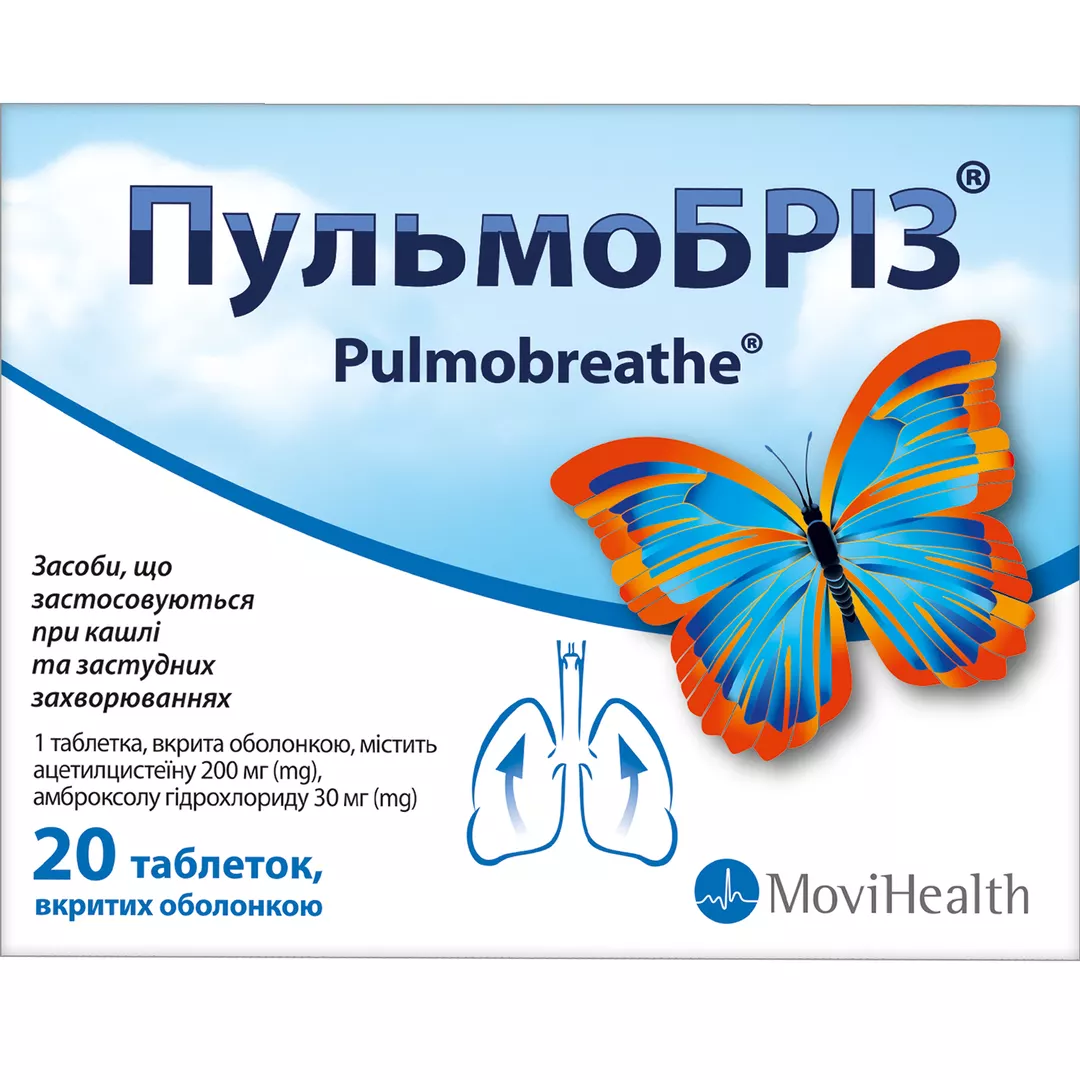 «Пульмобріз таблетки вкриті оболонкою №20, Сава Хелскеа» – це лікарський засіб, вироблений в Індії компанією «Сава Хелскеа», який широко використовується для лікування захворювань дихальних шляхів. До складу препарату входить комбінація діючих речовин з відхаркувальною дією: амброксолу 30 мг і ацетилцистеїну 200 мг. Препарат випускається у формі круглих таблеток помаранчевого кольору, вкритих оболонкою. Даний лікарський засіб сприяє розрідженню мокротиння та полегшенню його виведення з дихальних шляхів. «Пульмобріз» можна придбати без рецепта лікаря.