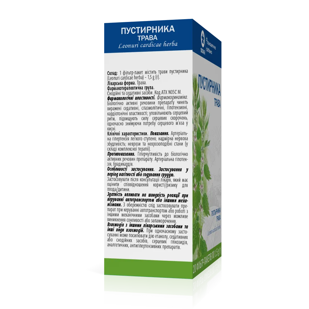 Склад:діюча речовина: трава пустирника (Leonuri cardiacae herba);