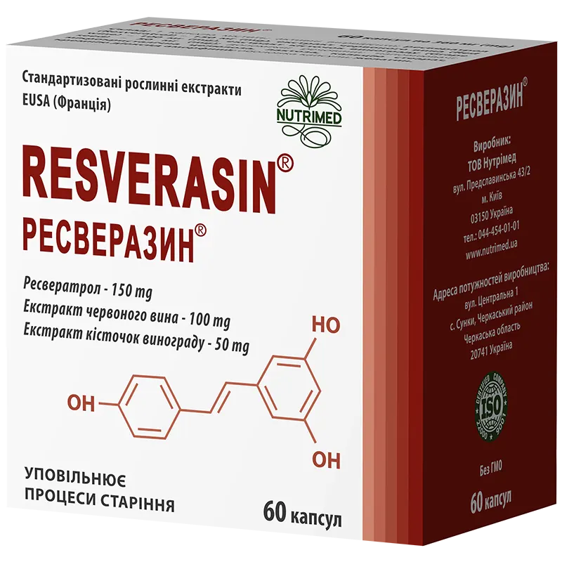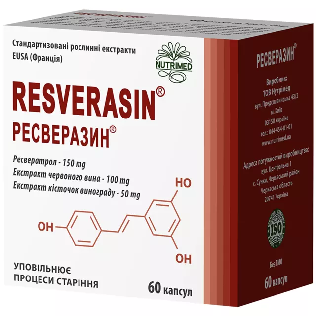ресвератрол – 150 мг, екстракт червоного вина – 100 мг,