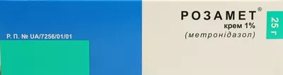 «Розамет крем 1% туба 25 г, Ядран» – крем для зовнішнього застосування,який використовують для місцевого лікування запальних папул і пустул при розацеа, вульгарних вуграх та розацеаподібному стероїдному дерматиті. Діюча речовина – метронідазол – належить до похідних 5-нітроімідазолу; при місцевому застосуванні сприяє зменшенню запалення та кількості висипань, зокрема завдяки впливу на ДНК анаеробних мікроорганізмів і протизапальній активності, підтвердженій у дослідженнях in vitro та in vivo.