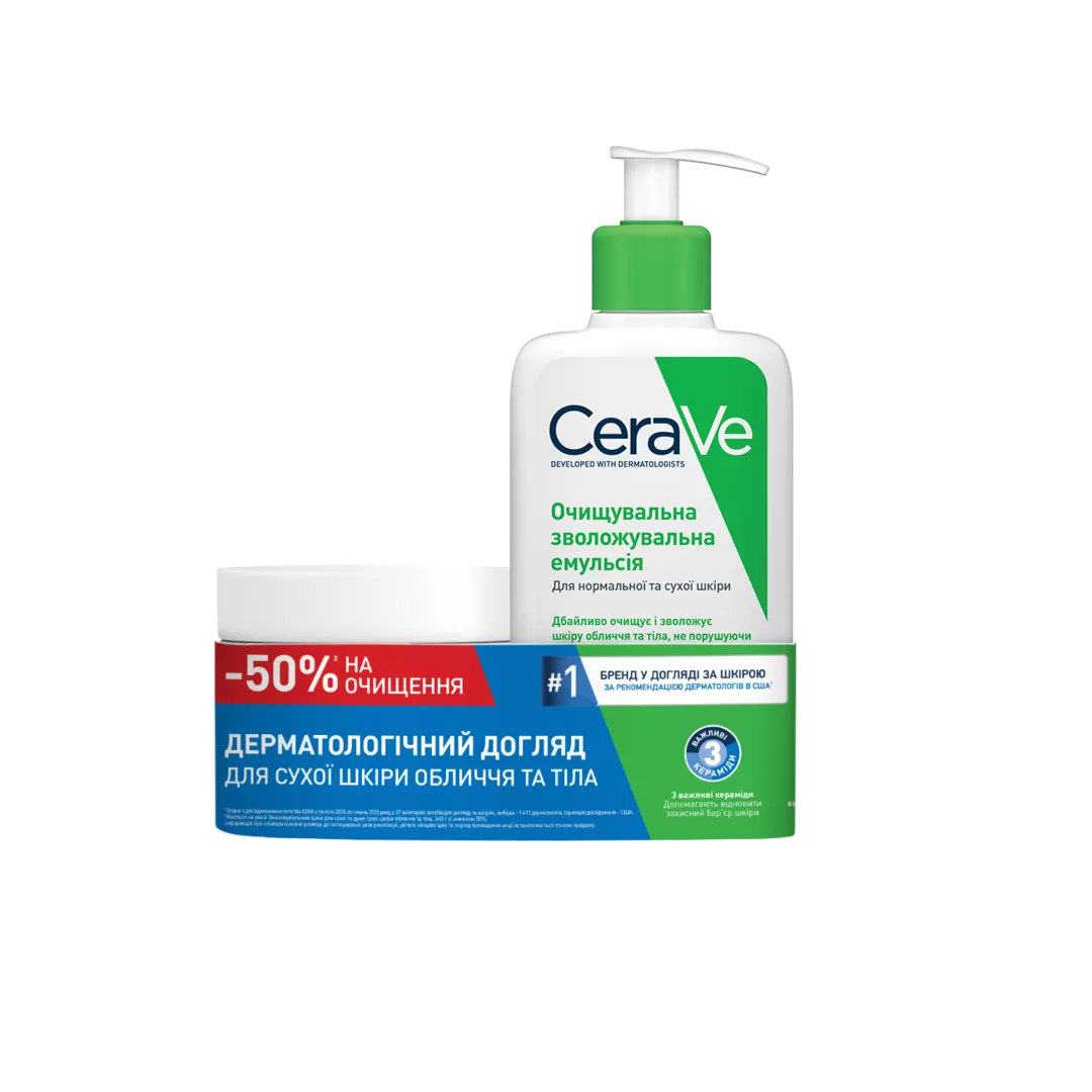 Сераве (СеraVe) крем зволожуючий 340 мл+очищуюча зволожуюча емульсія 236 мл (-50%), Cosmetic Active Internationale