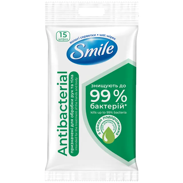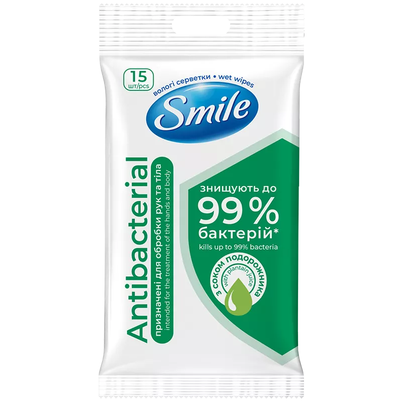 Д-пантенол відомий своєю регенеруючою, протизапальною дією, відмінно зволожує і пом'якшує шкіру. Антибактеріальні серветки Smile вбивають до 99,9% бактерій.