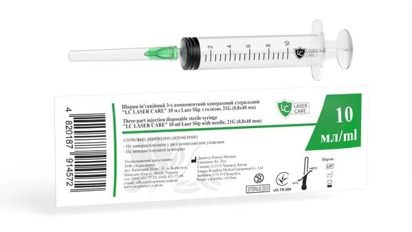 Шприц 10 мл ін'єкційний одноразовий трикомпонентний LC Луер Сліп (Luer Slip) 1 шт