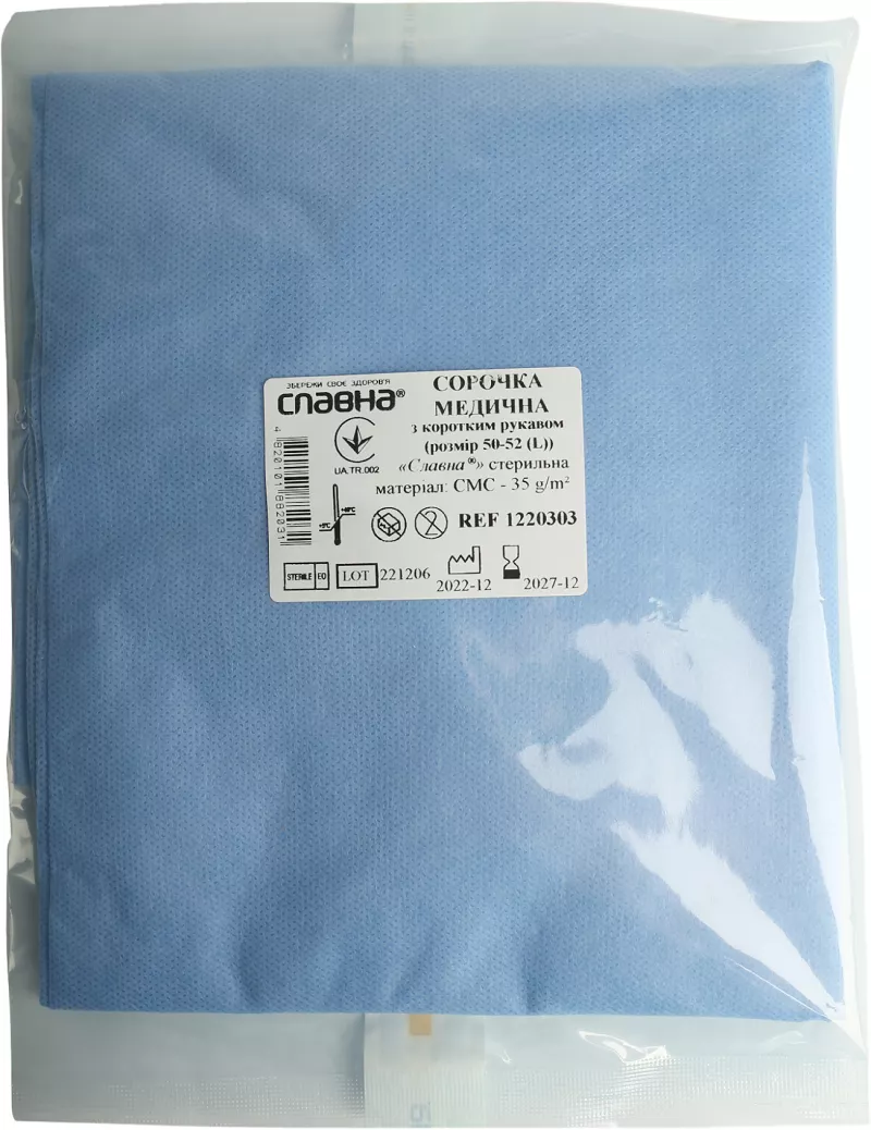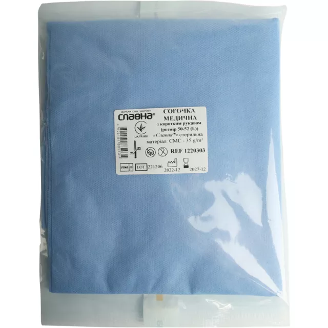 Сорочка медична Славна стерильна із коротким рукавом, СМС, розмір 50-52 (L), арт. 1220303